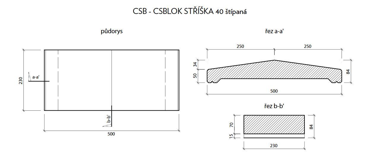 CSB CSBLOK stříška 40 Šedá 23 x 50 x 8,4 cm (paleta 28 ks)