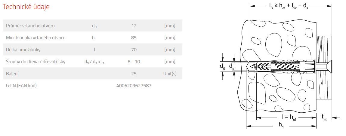 Detailní informace k výrobku, postupy, hodnoty atd. jsou uvedeny v technickém listu na https://www.fischer-cz.cz/cs-cz