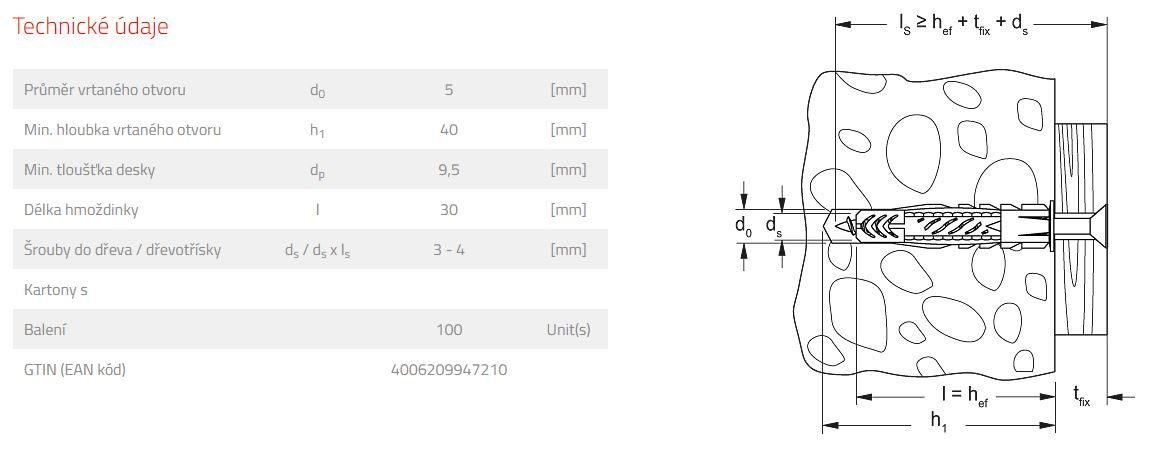 Detailní informace k výrobku, postupy, hodnoty atd. jsou uvedeny v technickém listu na https://www.fischer-cz.cz/cs-cz