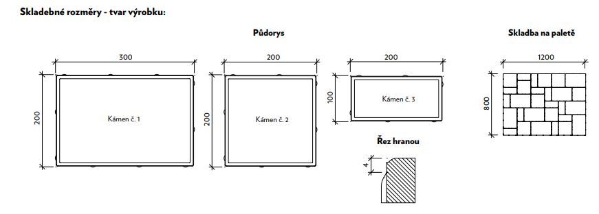 • Množství: kámen č.1 až 3 - 1,08 m2/vrstva ; 8,6400 m2/paleta