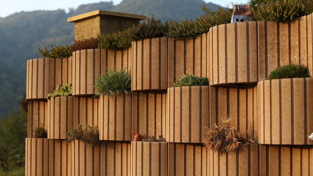• Opěrná zeď vytvořená z květináčů oproti standardní opěrné zdi z tvarovek přidanou hodnotu v podobě možnosti osazení okrasnými květinami.