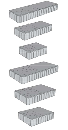 Dlažba Valencia se skládá ze šesti kamenů obdélníkového tvaru různých rozměrů. Betonová směs je obohacena o technologii CLEAN PROTECT PLUS.