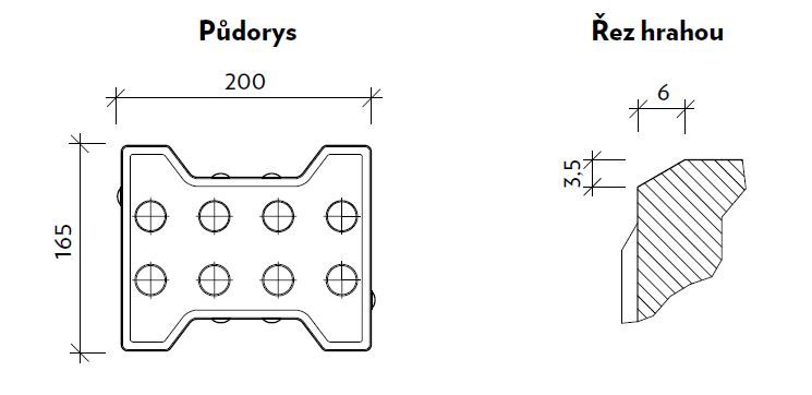 • Dlažba je určena výhradně na pochozí plochy a je doplňkovým kusem k standardní dlažbě KOST a to i svým barevným provedením se standardním povrchem.