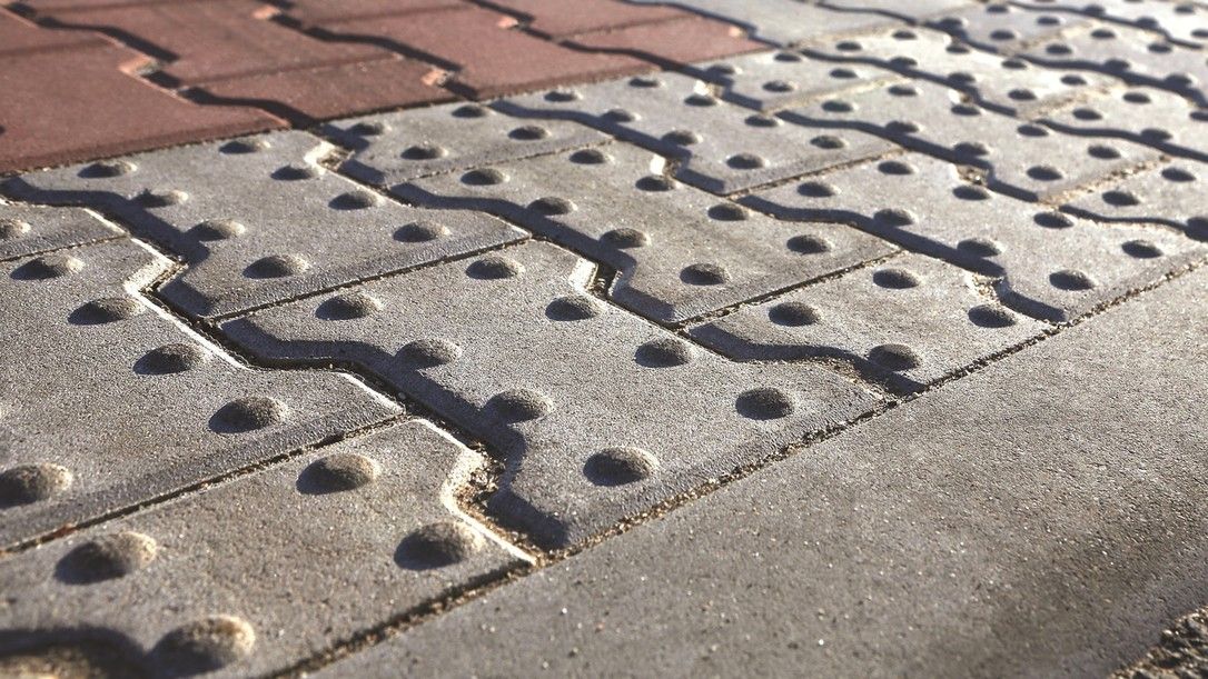 Dlažba s plastickou úpravou povrchu určená pro nevidomé a slabozraké občany.