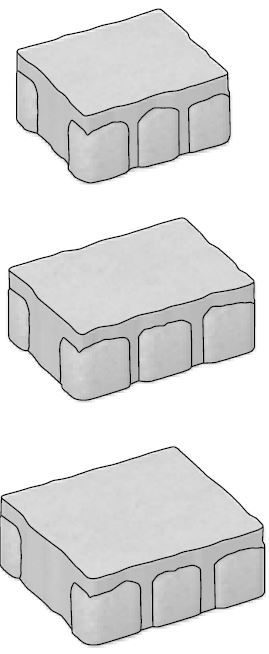 Tento typ dlažby je charakteristický svými rovnými hranami, které jsou ve svislém směru mírně zvlněné a velkými dilatačními spárami, které vymezují její distančníky.