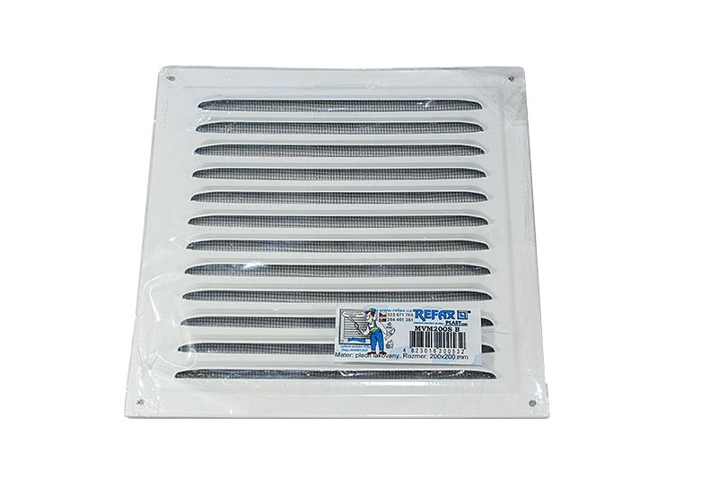 Mřížka ventilační kovová pozinkovaná bílá se síťkou 250 x 250 mm