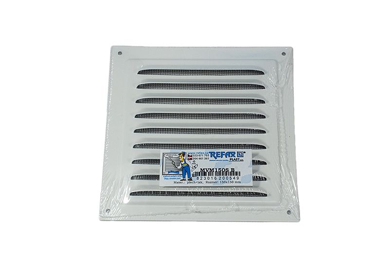 Mřížka ventilační kovová pozinkovaná bílá se síťkou 125 x 125 mm