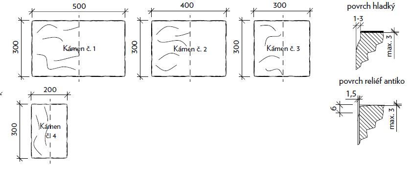 Moderní betonová dlažba je tvořena kombinací čtyř dlaždic většího formátu, nabízena je ve dvou variantách povrchu.