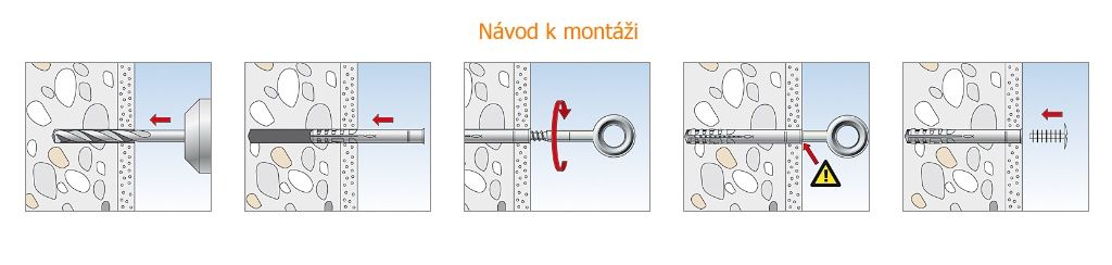 Fischer oko se závitem GS z galvanicky zinkované oceli se kombinuje s rozpěrnou hmoždinkou S 14 ROE vhodnou do plných stavebních materiálů. S hmoždinkou S 16 H se oko se závitem používá do zdiva z děrovaných cihel nebo pórobetonu. Značení na těle šroubu umožňuje kontrolu hloubky zašroubování a zabraňuje nechtěnému uvolnění. fischer oko se závitem je vhodné pro upevnění fasádního lešení, kabelů či řetězů.