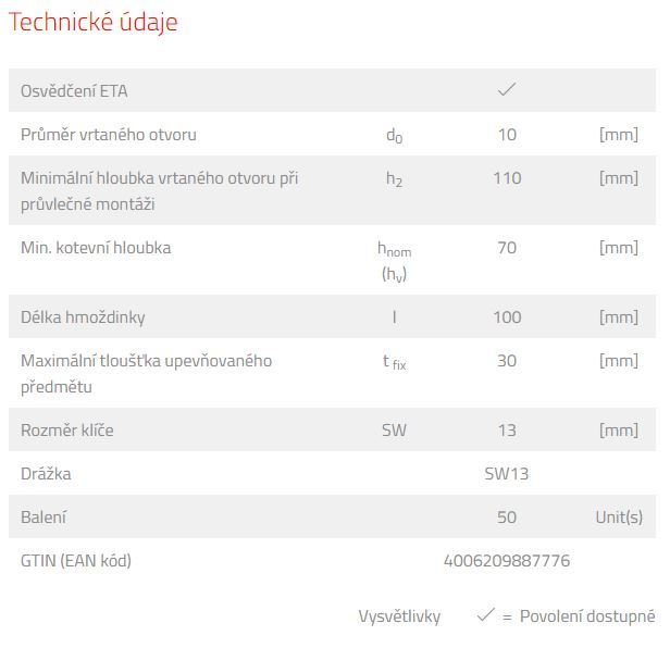 fischer Hmoždinka FUR 10 x 135 SS SW 13 (balení 50 ks) DOPRODEJ