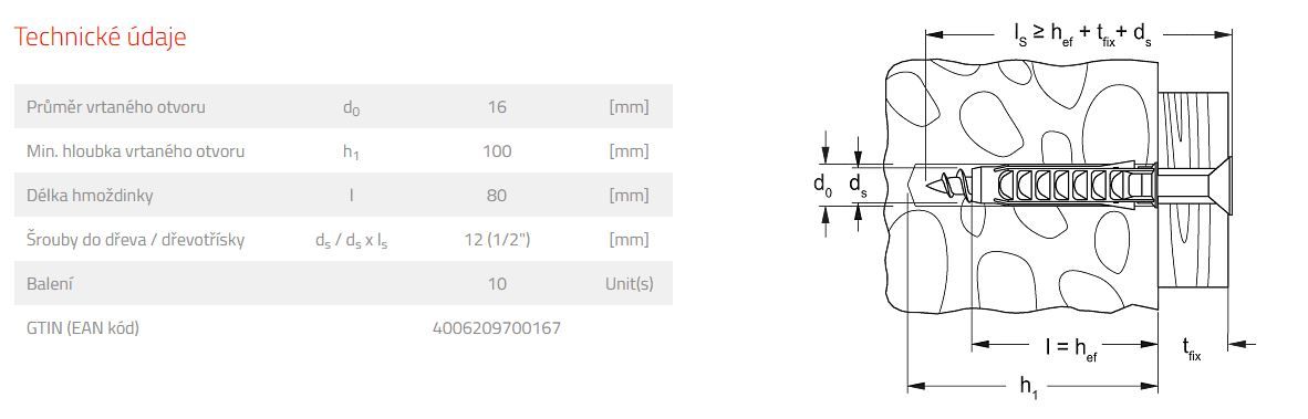 Fischer rozpěrná hmoždinka SX 16 x 80 s límečkem.
