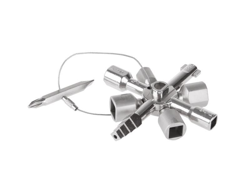 • Univerzální klíč pro otevírání elektrických rozvaděčů, plynových a vodních kohoutů, pro klimatizaci, ventilaci a odvzdušňování topení