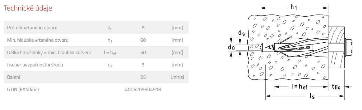 Fischer hmoždinka pro pórobeton GB 10.
