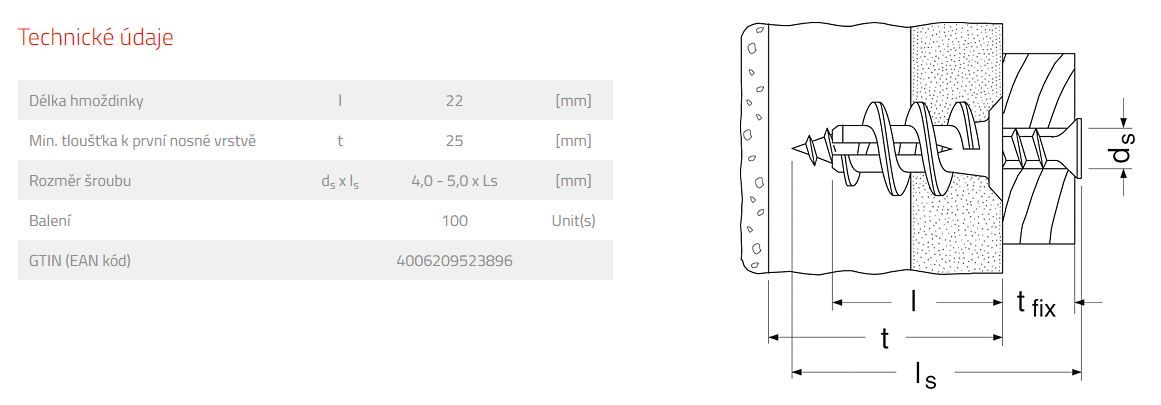 Fischer hmoždinka do sádrokartonu GK je vyrobena z kvalitního nylonu. Je vhodná pro předsazenou montáž.
