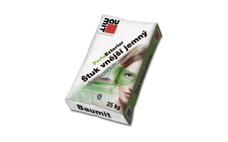 Obsah pytle 25 kg vnější štukové omítky Baumit PerlaExterior zamíchat pomaluběžným mísidlem s cca 6 l záměsové vody do homogenní hmoty bez hrudek. Doba mísení je cca 3 - 5 minut.