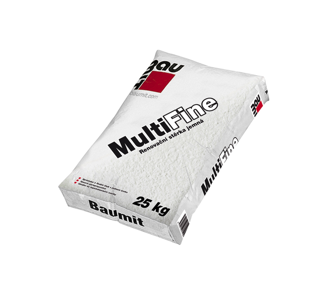 Obsah pytle 25 kg Baumit MultiFine se smísí pomaluběžným mísidlem v 5 - 6 litrech čisté vody. Po cca 5 minutovém odležení a opětovném promísení je připravena ke zpracování. Při míchání v míchačce s nuceným oběhem je doba míšení 2 min.