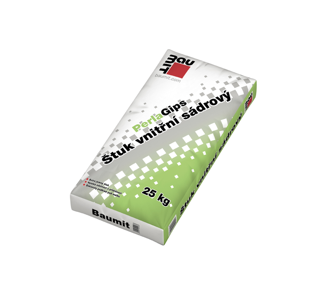 Obsah pytle 25 kg sádrové štukové omítky Baumit PerlaGips zamíchat pomaluběžným mísidlem s cca 8 l záměsové vody do homogenní hmoty bez hrudek. Doba mísení je cca 3 - 5 minut.