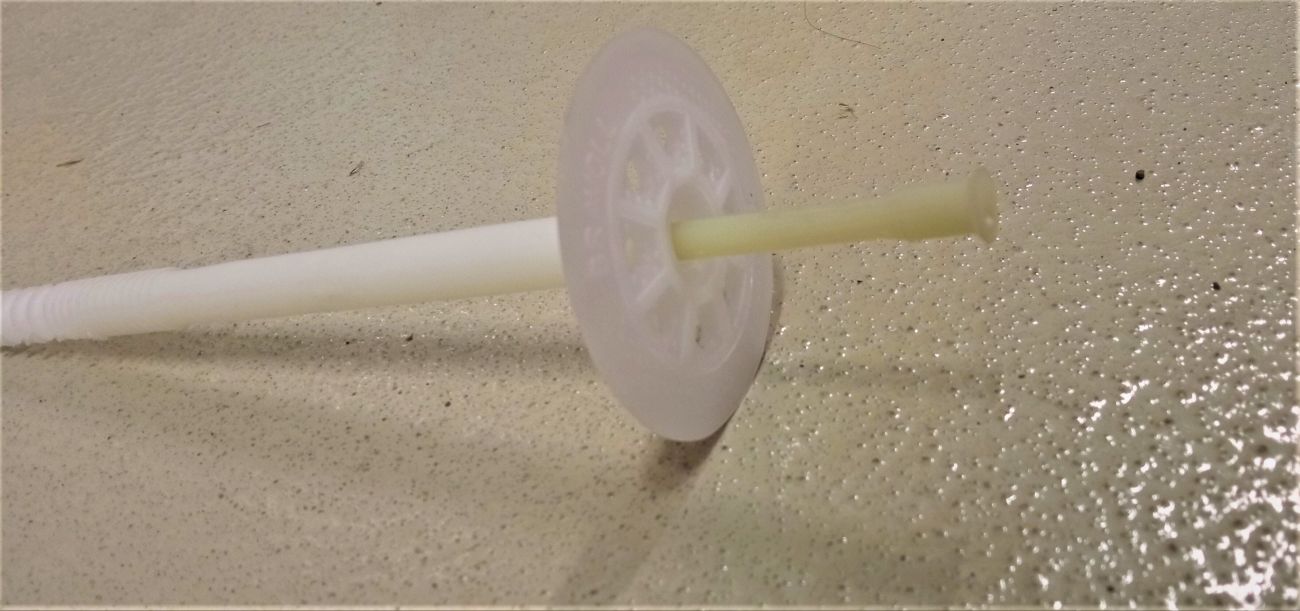 Zatloukací talířová kotva s plastovým trnem k mechanickému upevnění tuhých tepelněizolačních desek v polystyrenu v kontaktních zateplovacích systémech.