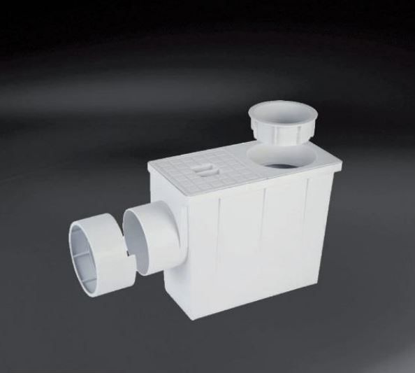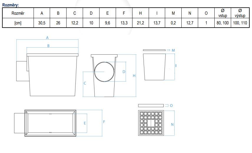 Lapač splavenin pro odvod dešťové vody z okapového potrubí do kanalizačního systému.