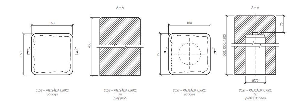 Palisády trvale impregnovány proti znečištění a pro zvýšení odolnosti povrchu proti chemickým rozmrazovacím látkám.