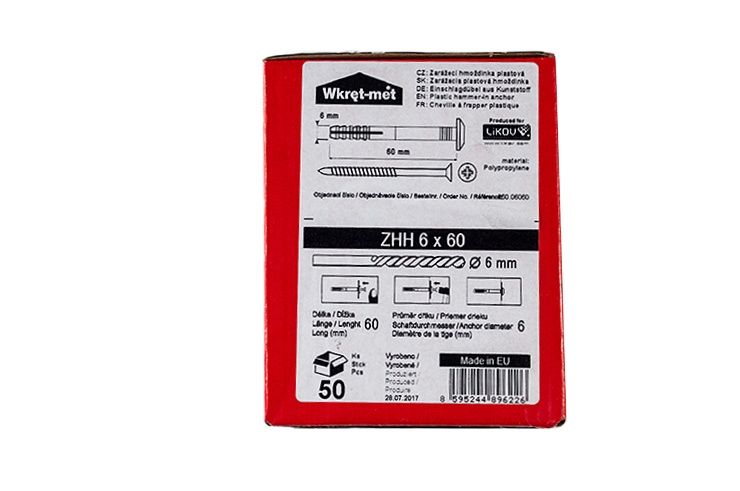 Zatloukací hmoždinka ZHH 06/080/50 ks/ plastová zarážecí Polypropylen (bal. 50/800 ks)