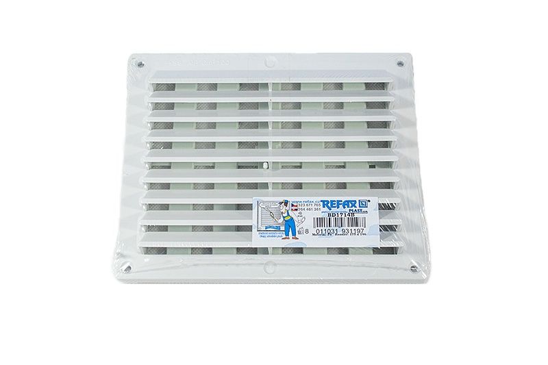 Mřížka ventilační PVC hranatá bílá s regulací 175 x 146 mm.