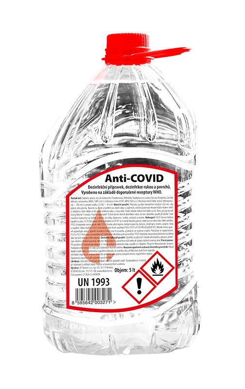 Anti-COVID je dezinfekční přípravek vyráběný podle specifikací WHO (Světová zdravotnická organizace), účinně hubící široké spektrum bakterií, plísní a virů, ale především aktuální koronavirus, který způsobuje nemoc COVID-19!
