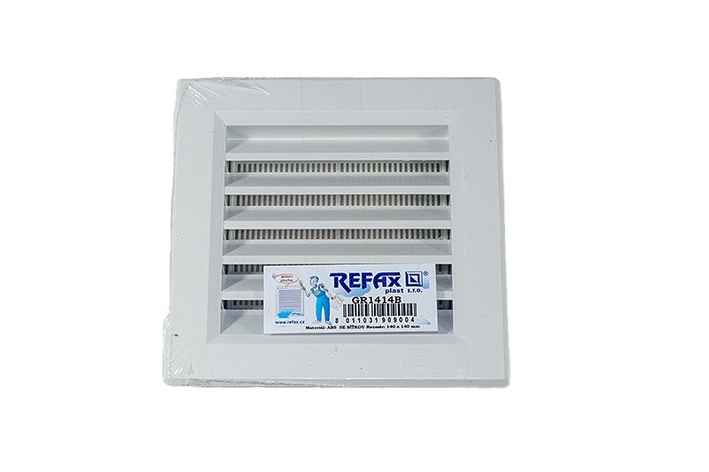 Mřížka ventilační PVC hranatá bílá se síťkou 140 x 140 mm.