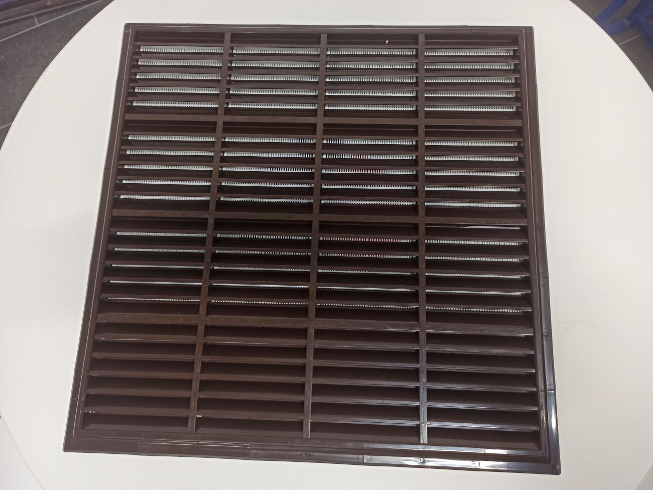 Sestavená větrací mřížka se síťkou proti hmyzu, hnědá.