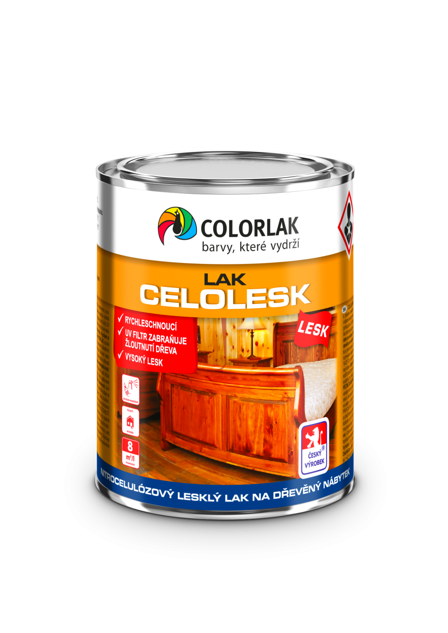 Nitrocelulózový lesklý lak na dřevěný nábytek.