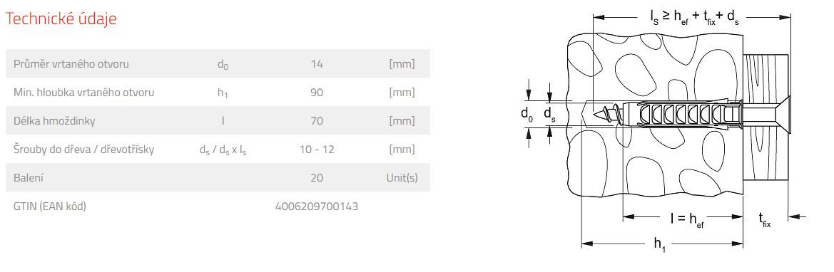 Fischer rozpěrná hmoždinka SX 4 x 20 s límečkem.
