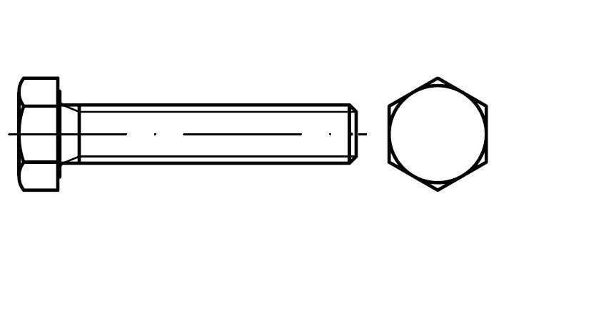 Šroub se šestihrannou hlavou se závitem k hlavě.