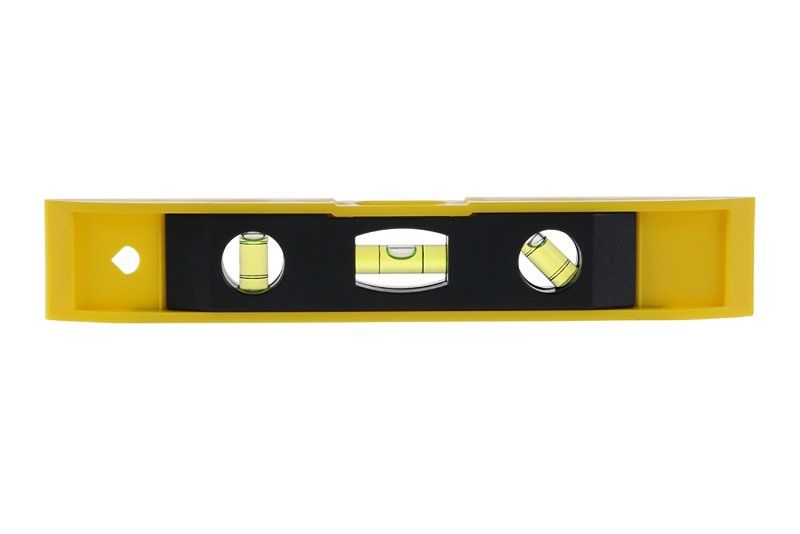 Hobby vodováha se třemi libelami a magnetickou základnou pro orientační měření.